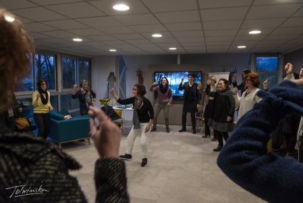 L’exercice évoluera vers une forme rythmée, offrant un espace pour un solo vocal. Une fois la structure stable, chacun pourra entrer au centre, libre de danser, chanter ou écouter.